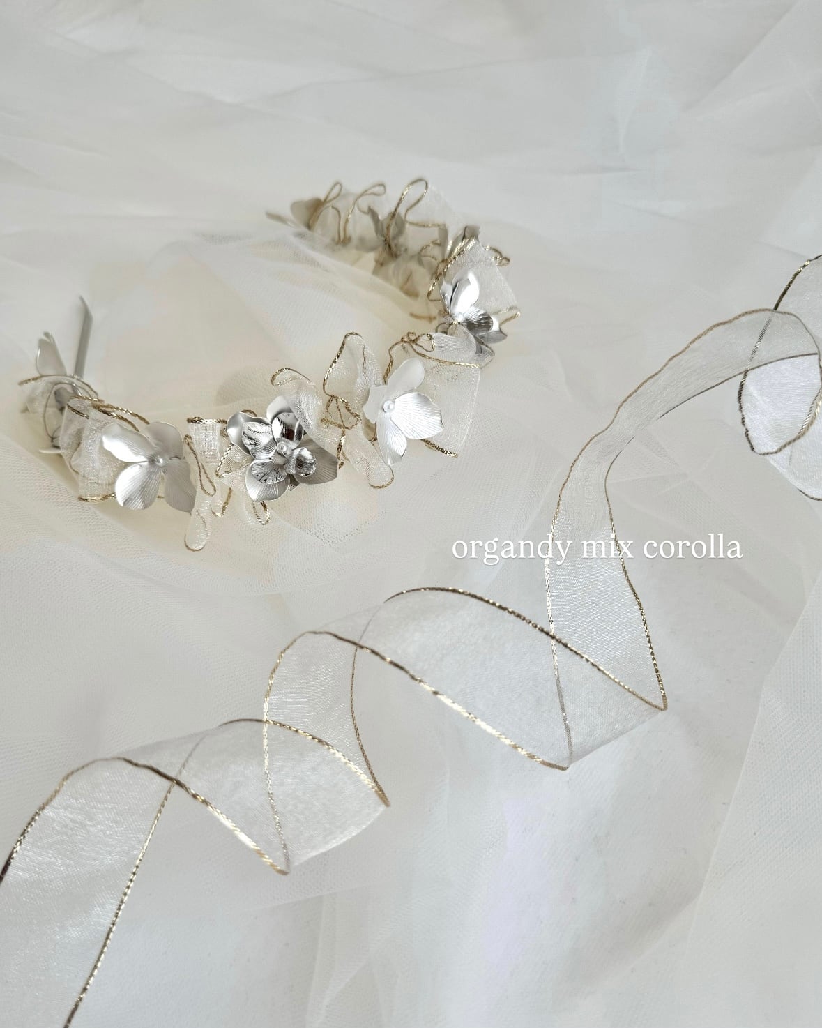 オーガンジー素材をmixした花冠は