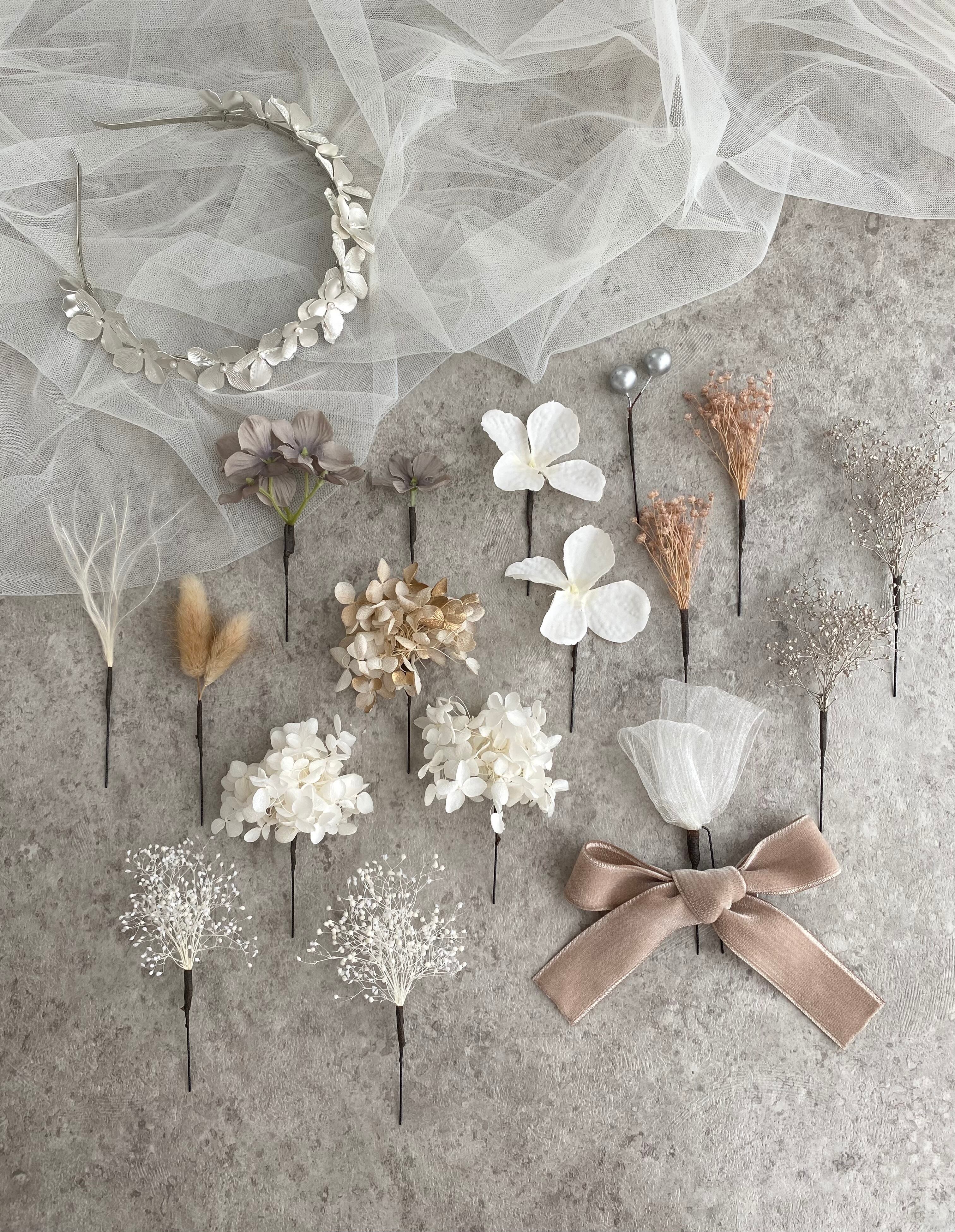 ※花冠が付いている商品については、花冠と髪飾りパーツが別配送となり別日にお届けになる可能性がございます