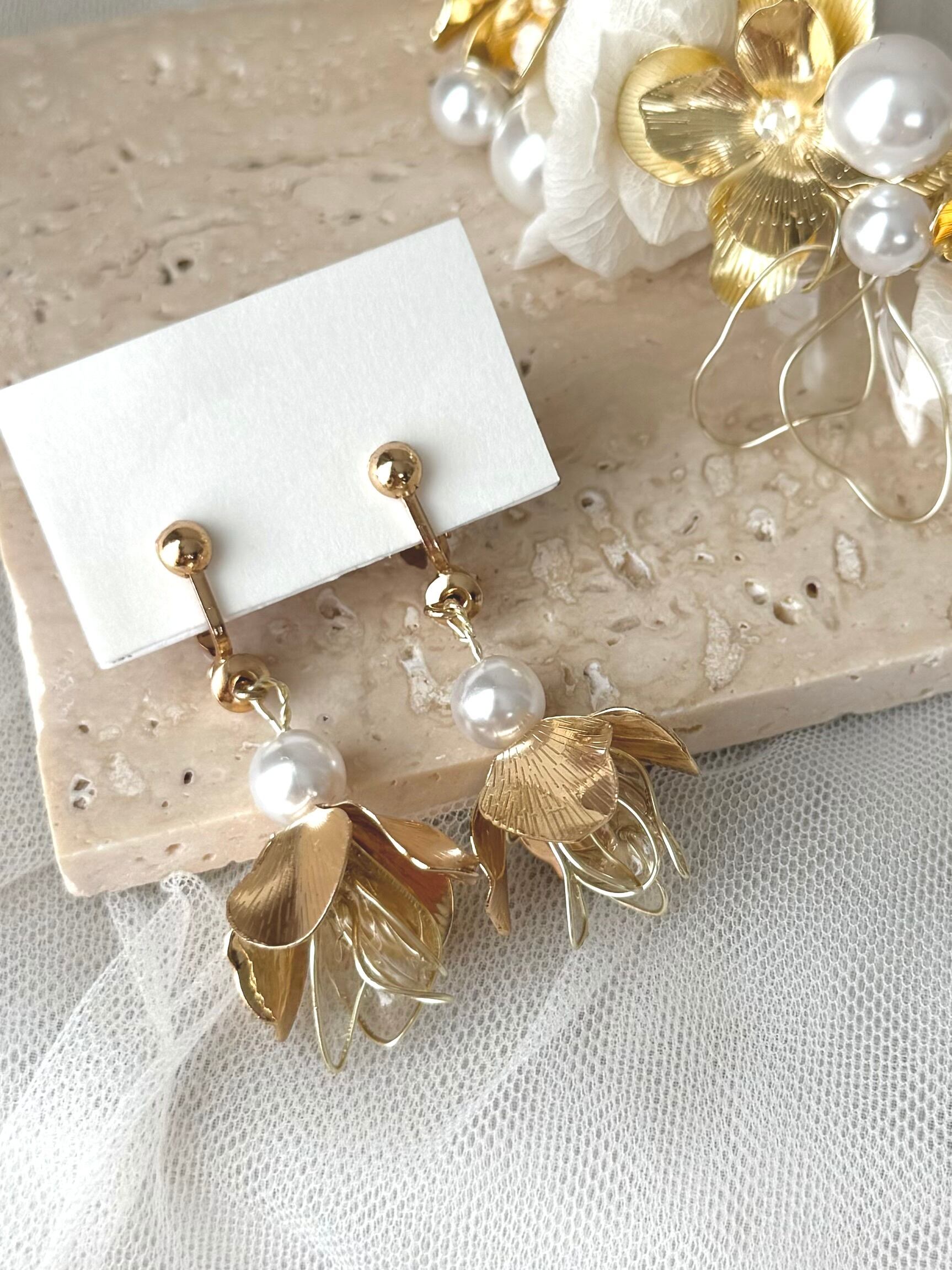 華やかなゴールドのお花とパールを合わせた