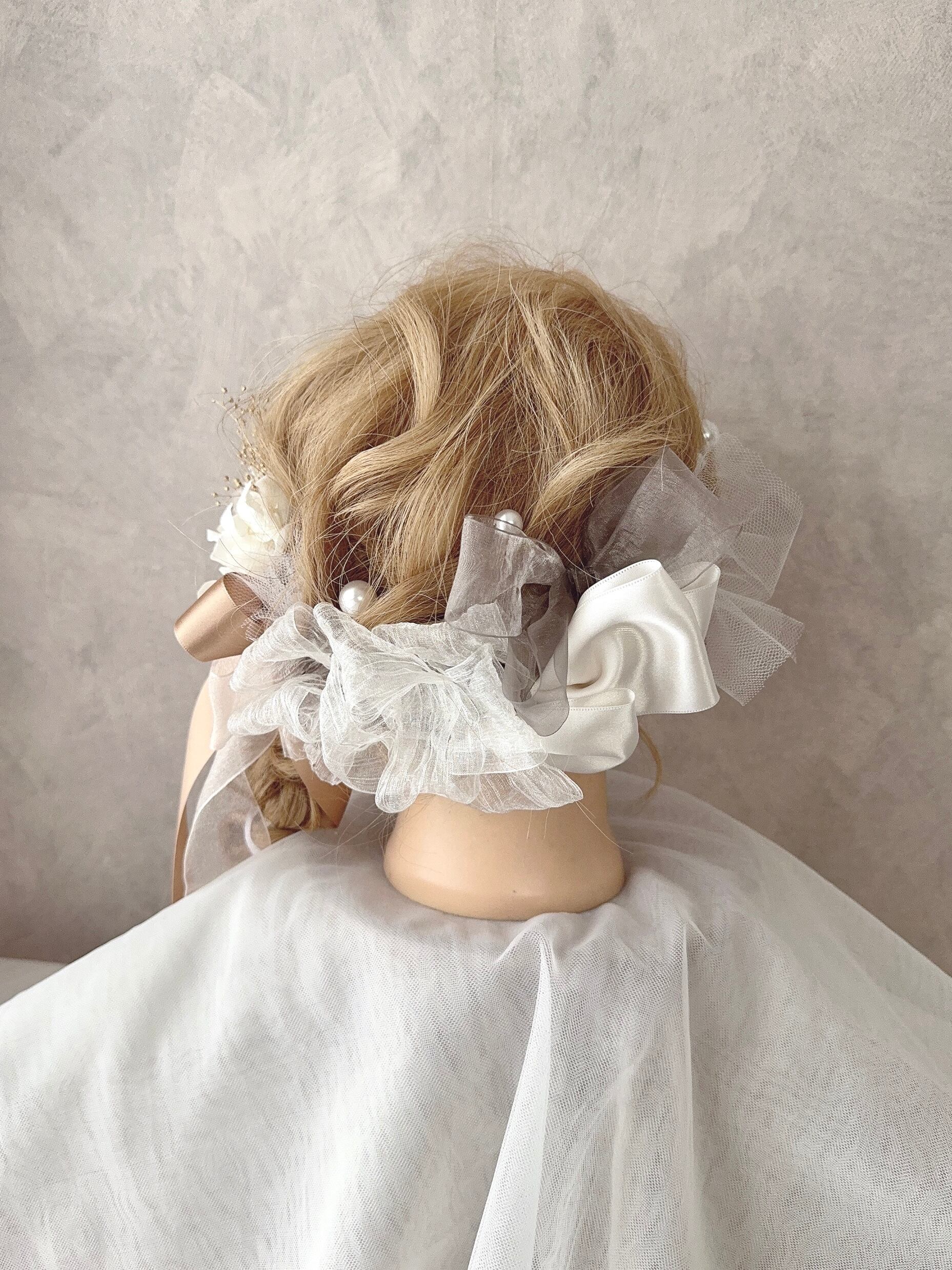 ribbon × ribbon × Pearl mix 髪飾り